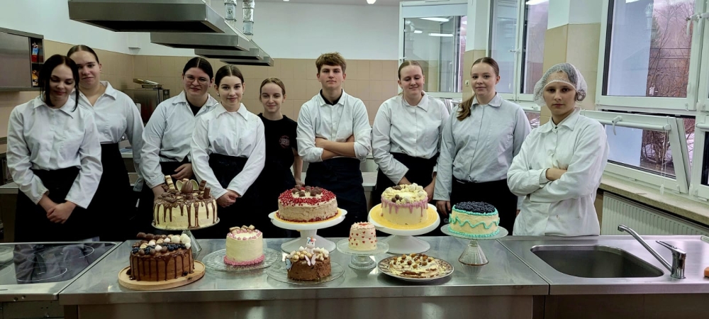 Klasa 2G doskonale zna to powiedzenie, więc z dumą prezentuje pyszne torty wykonane na pracowni gastronomicznej pod okiem pani Sylwii Skorupy.