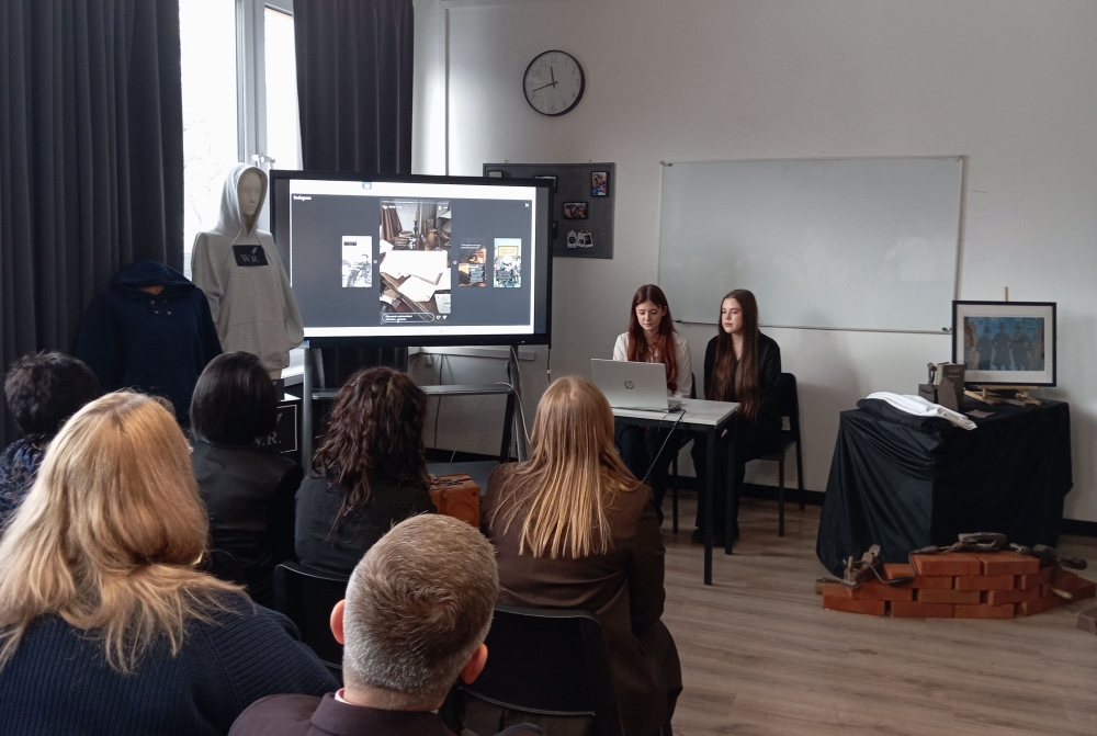 Łódź w czasach Reymonta słynęła z przemysłu włókienniczego, co stało się tematem powieści „Ziemi obiecana”. Uprzemysłowienie branży tekstylnej w XIX w. zainspirowało uczennice do stworzenia marki odzieżowej sygnowanej nazwiskiem Reymonta, czego efekt mogliśmy podziwiać w tej przestrzeni. Nowocześnie rozwijające się miasto stało się przyczynkiem do zaprezentowania tych projektowych prac uczniowskich, jakie nawiązywały do social mediów: Facebooka, Instagrama, Tiktoka. To te media kształtują codzienność, poglądy i opinie, a często nawet - pomysł na biznes przeniesiony do wirtualnej rzeczywistości.