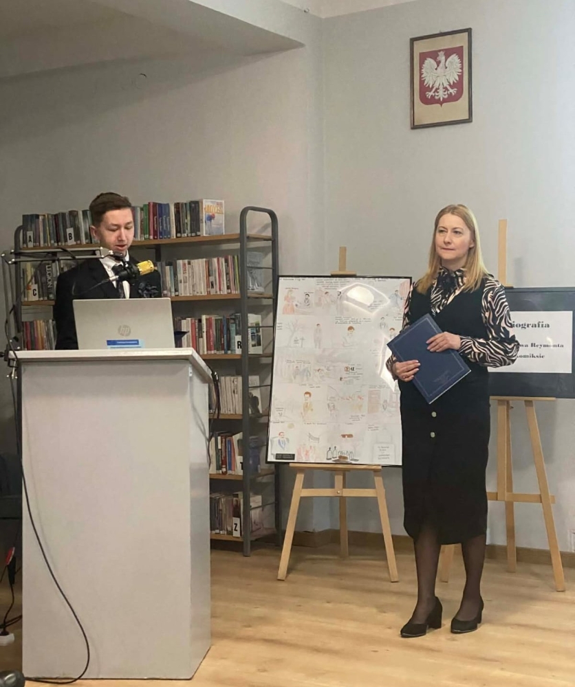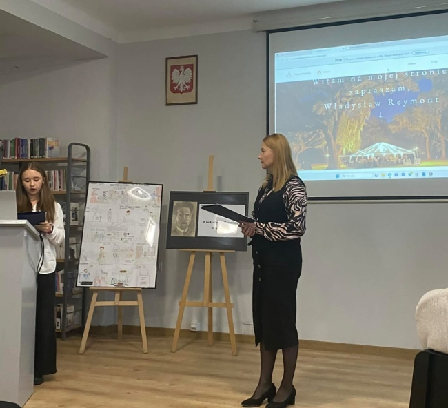 Biografizm to zadanie czasochłonne,obarczone trudem odkrywania werniksu czasu. Biografia Władysława Reymonta to także zadanie, z jakim zmierzyli się uczniowie naszej szkoły.Wyposażeni w rzetelne źródła bibliograficzne, opracowane przez panie bibliotekarki z ZSGH, stworzyli filmy, komiksy, piosenki, strony internetowe, profile na Instagramie Facebooku, TikToku, witryny sklepu firmowego Reymonta, wywiady. Efekty ich polonistycznego projektu obserwowaliśmy podczas całego Festiwalu Reymontowskiego.Uczniowie nauczyli się też wykorzystywać sztuczką inteligencję w tworzeniu materiałów biograficznych o Reymoncie.