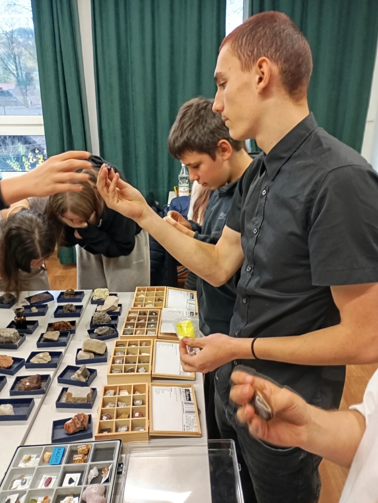 Po solidnej dawce wiedzy teoretycznej na temat skał i minerałów, ich różnorakiemu pochodzeniu, zróżnicowanej twardości i teksturze itp., uczniowie klasy 2G mogli przystąpić do działania i zweryfikować zdobytą wiedzę w praktyce. Polem do popisu były warsztaty z rozpoznawania skał i minerałów, które odbyły się w ramach lekcji geografii. Podczas warsztatów przyszli gastronomowie mieli do swojej dyspozycji ponad sto różnorodnych okazów. Zajęcia były okraszone licznymi ciekawostkami na temat prezentowanych eksponatów. Uczniowie mogli się m.in. dowiedzieć, że piryt jest zwany potocznie „złotem głupców”, ponieważ przez amatorskich poszukiwaczy złota był często mylony z tym cennym kruszcem, choć poza kolorem nie ma z nim nic wspólnego.