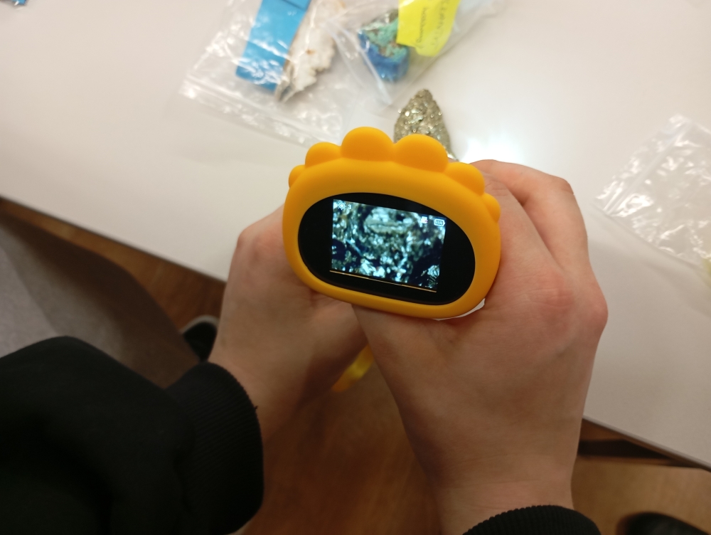 Największą atrakcją okazała się możliwość zobaczenia skał i minerałów pod mikroskopem cyfrowym. ‒ Niektóre okazy są bardzo śliczne, a w powiększeniu wyglądają wręcz zjawiskowo ‒ zgodnie kwitowali to doświadczenie uczniowie. Sodalit, malachit, ametyst czy sztucznie wyhodowany chalkantyt ‒ to minerały, które cieszyły się największym powodzeniem.