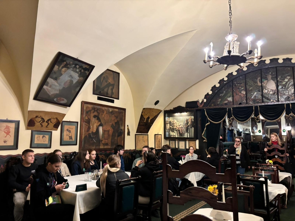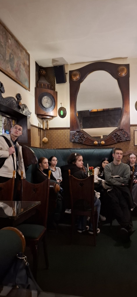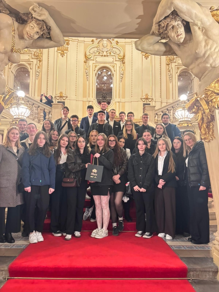 29 i 30 października 2025 roku uczniowie z klas maturalnych 5H oraz 5EG zwiedzali Kraków, przemierzając go tropem młodopolskiej bohemy. Z pewnością tak zaprojektowana wyprawa - przez uznaną przewodniczkę po Krakowie panią Annę Gigoń i Biuro Podróży Lato Marzeń z Milówki - przyczyniła się do utrwalenia wiedzy młodzieży o epoce modernizmu. Przyszli maturzyści mogli zweryfikować swoje wyobrażenia o życiu pierwowzorów postaci „Wesela”, zwiedzając Rydlówkę; poczuć się jak artyści spotykający się w Jamie Michalika – a wreszcie - zobaczyć wnętrza zabytkowego Teatru im. Juliusza Słowackiego w Krakowie.