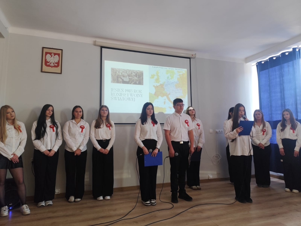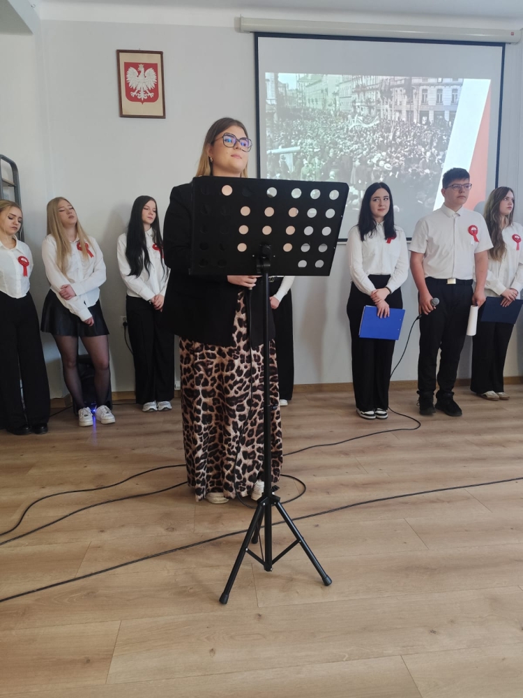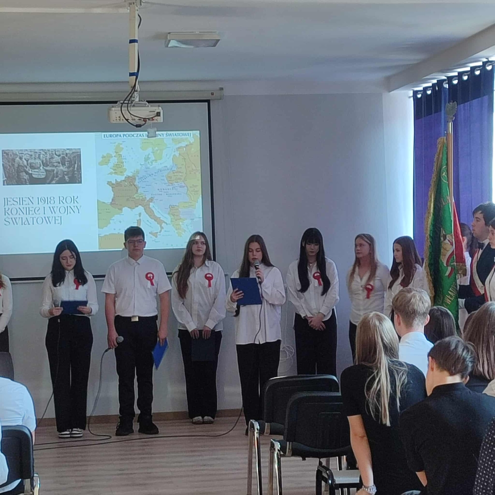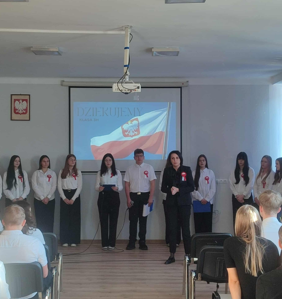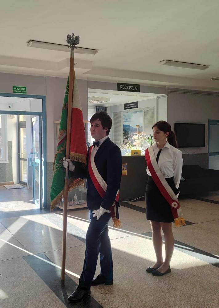 W Zespole Szkół Gastronomiczno-Hotelarskich w uroczyste świętowanie tego wyjątkowego dnia wprowadziła nas klasa 3H oraz Julia Nogowczyk (kl.5E).