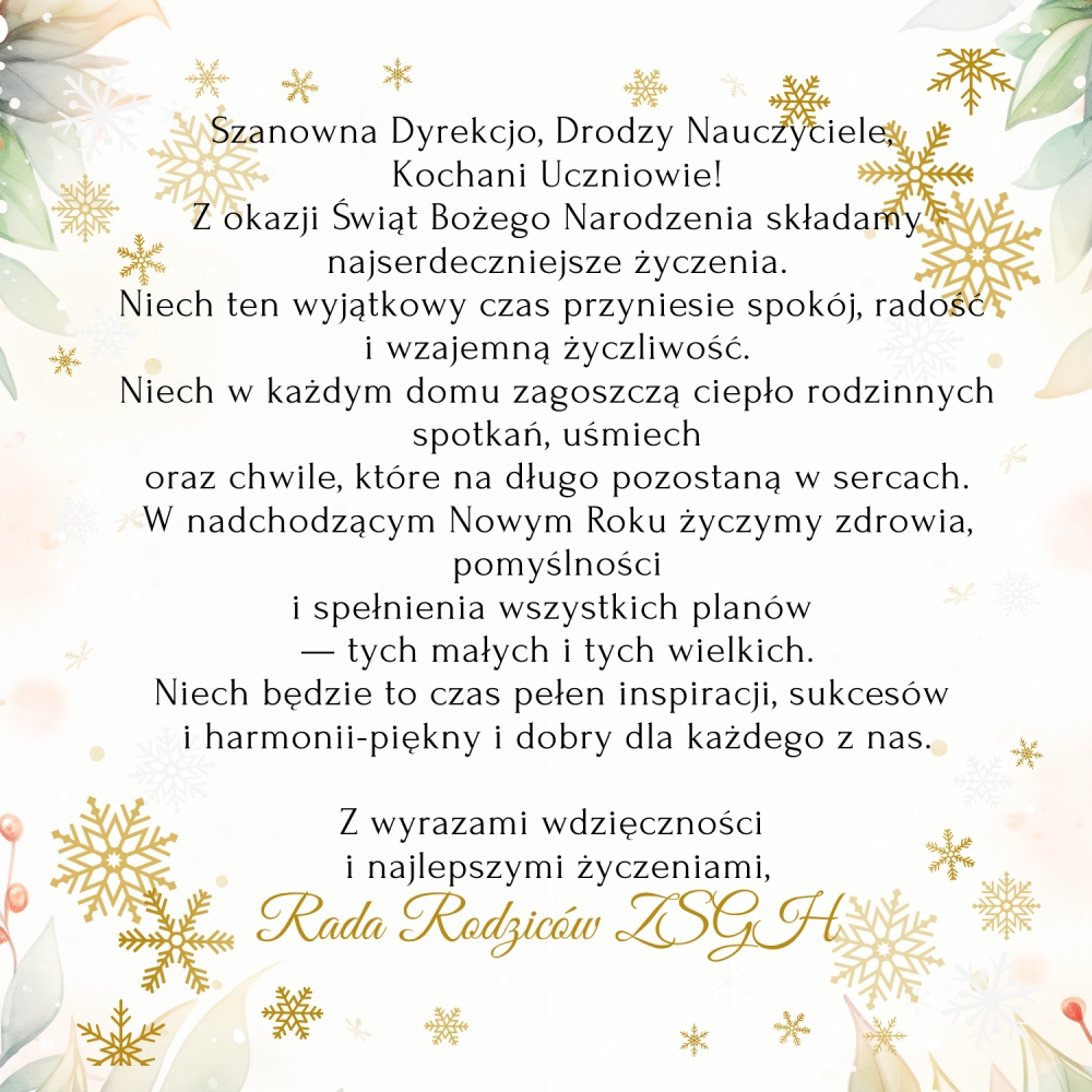 Świąteczne życzenia Rady Rodziców