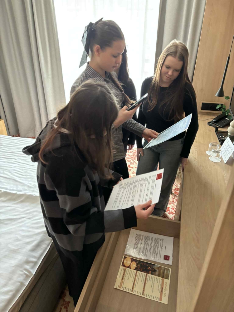 W kolejnej części zajęć pracowaliśmy z dokumentacją stosowaną w recepcji tego obiektu oraz wyszukiwaliśmy odpowiedzi do najczęściej zadawanych przez gości pytań - to była solidna dawka praktyki.
