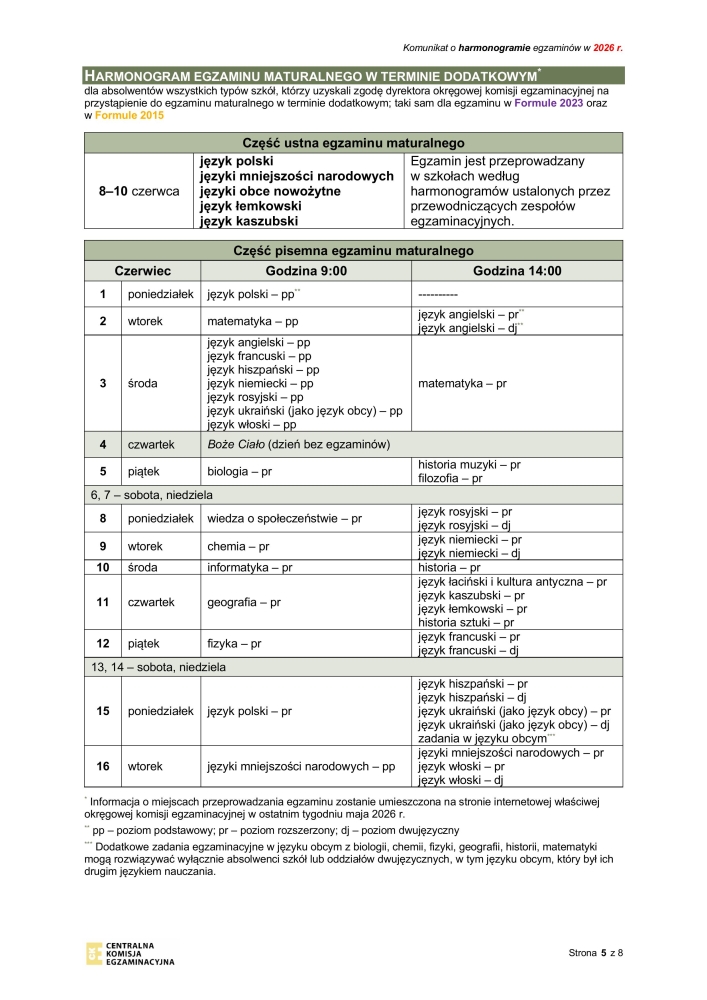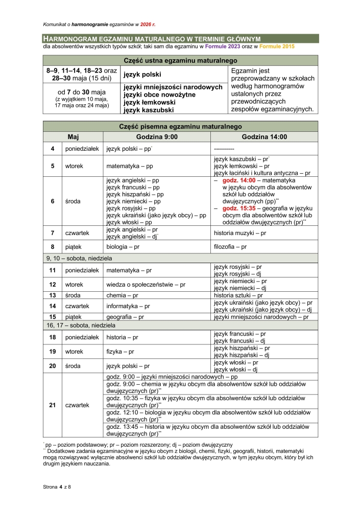 Do 09 lutego 2026 r. złóż u Wychowawcy deklarację przystapienia do egzaminu maturalnego.
